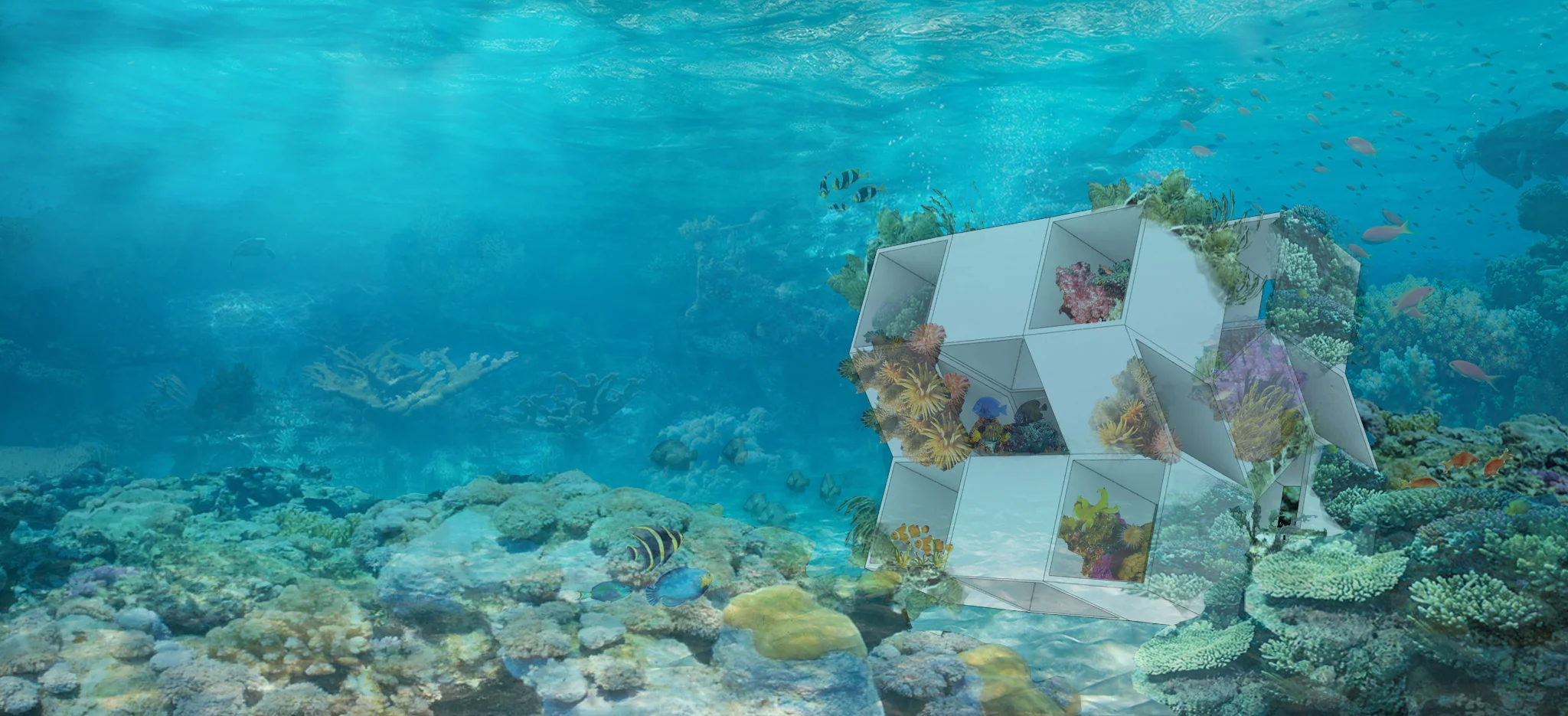 For the long run, we are interested in creating open ecosystems and open ocean farms through the restoration or creation of coral reefs. It is well studied that coral reefs are natural sea food farms. C urrent ocean farming, as a second but also highly relevant topic, has its own challenges. Fish wastes, excess food, fish escapes, antibiotics, and various chemicals from fish farms can all result in water pollution and harm surrounding habitats by poisoning wildlife and causing other disturbances. With our programmable, deployable structures, there is hope to create “open ocean farms”, where underwater organisms (plants and animals) are attracted to grow within the structures, form new ecosystems and free to circulate in the larger, open underwater world to create “bluegreen economy”.